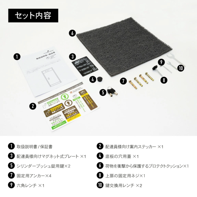 - ■宅配ボックス発売記念!今なら10%オフで購入可能!さらに、税込1,500円相当の盗難防止ワイヤーロックもお付けします!