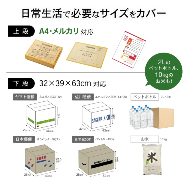 従来モデルには少ない、「投函口が2つ」付属されてるため、下からは大きくて重い荷物もしっかり受け取り、スペースに余裕があれば上から何回も投函可能です!