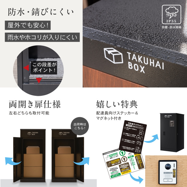 TAKUHAI BOX はお客様のニーズに耳を傾け、非対面で荷物の受け取りをより快適にするべく、従来のモデルにはなかった最新機能を多数採用しました。