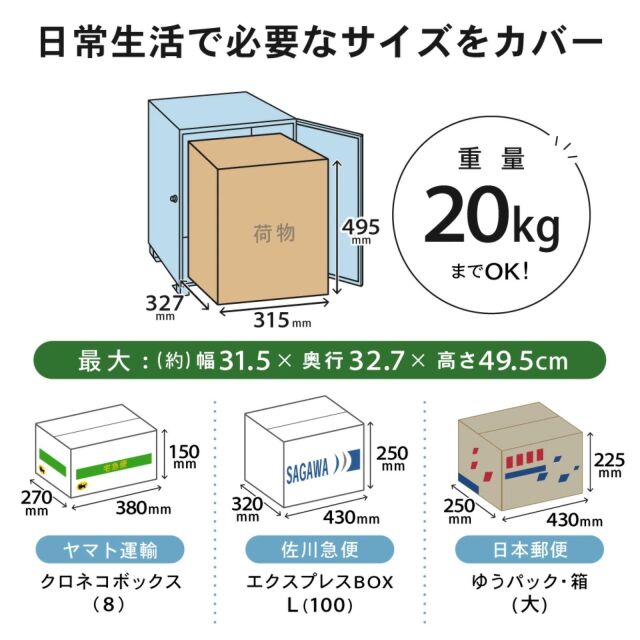 最大投函サイズ:高さ315mm×幅495mm×奥行327mm